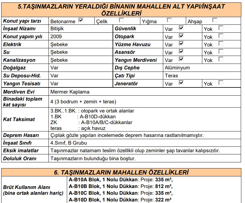 1- A-B10A Blok, 1. Kat, 1 No'lu Bağımsız Bölümlü, Dükkan, 331 m²
